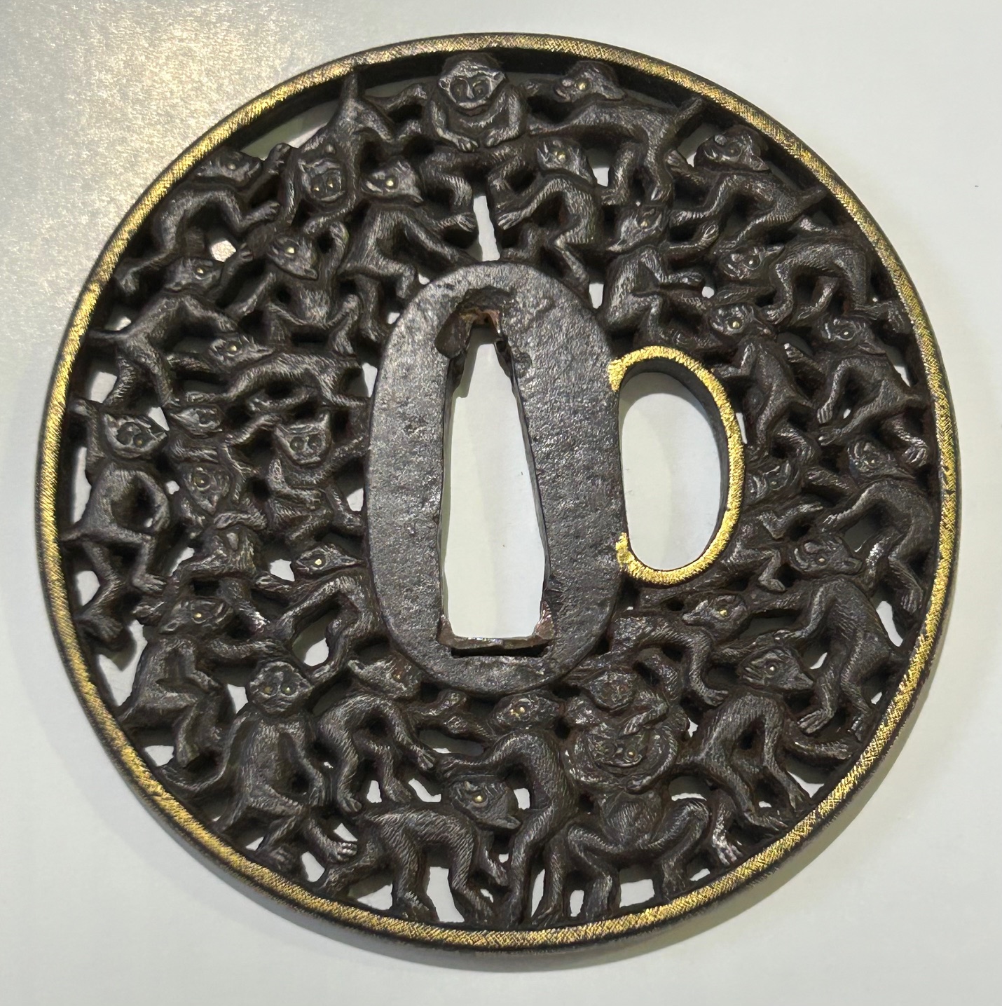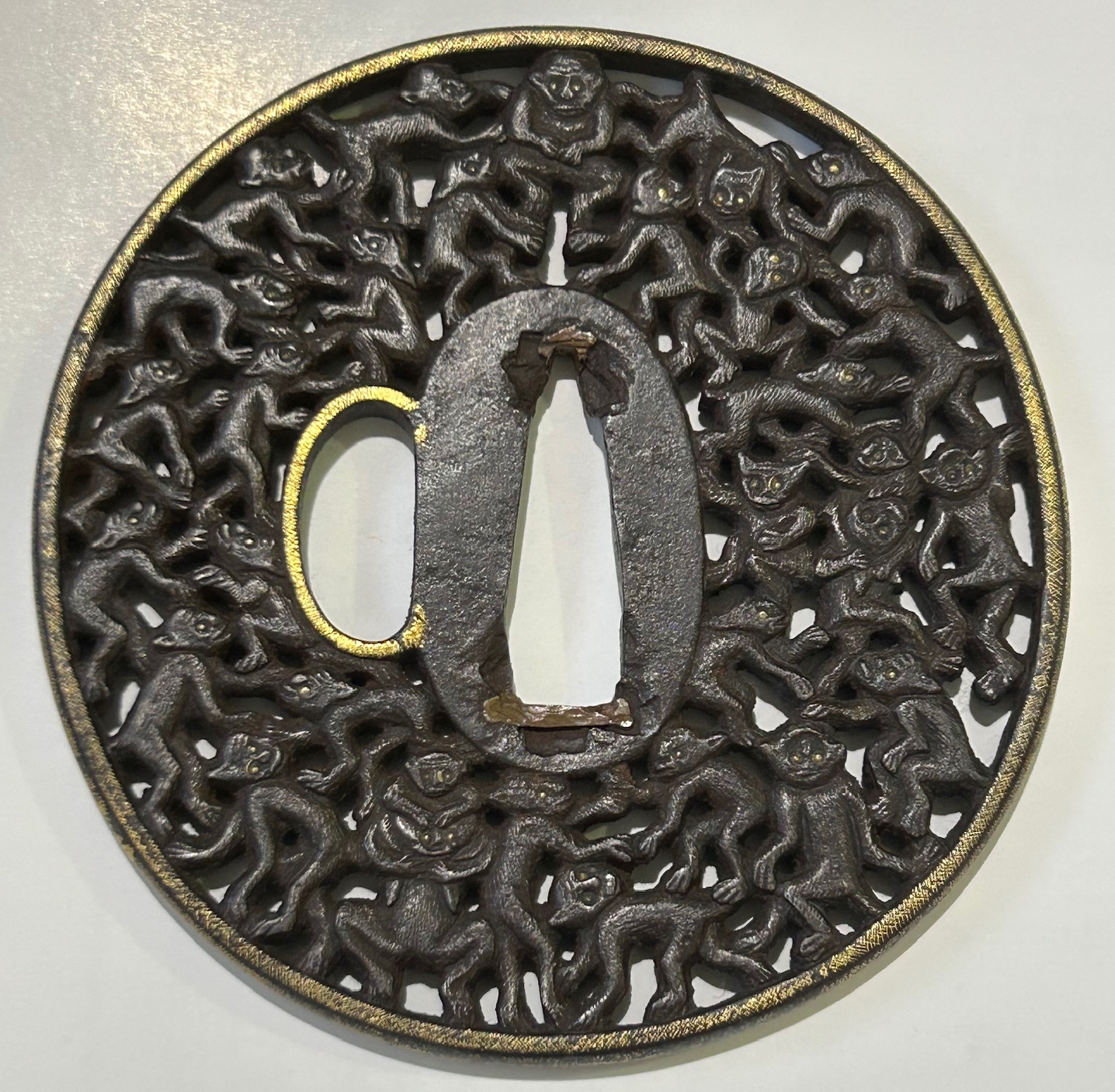Japanese Samurai Antique 1000 Monkey Tsuba
