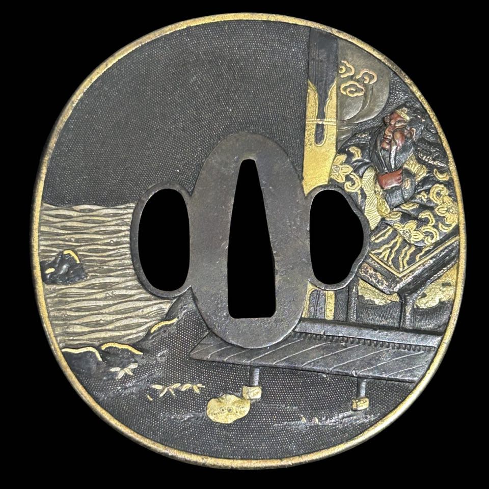 Tsuba With NTHK Certificate attributed to Goto Jujo the second master of the Goto Saburoemon school Jujo (Mitsutaka) . Motif of General Guan Yu.