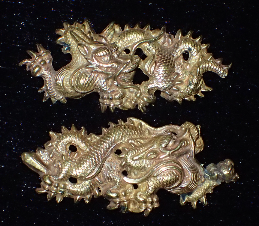 Japanese Antique Samurai Sword Gold Dragon Menuki quantity