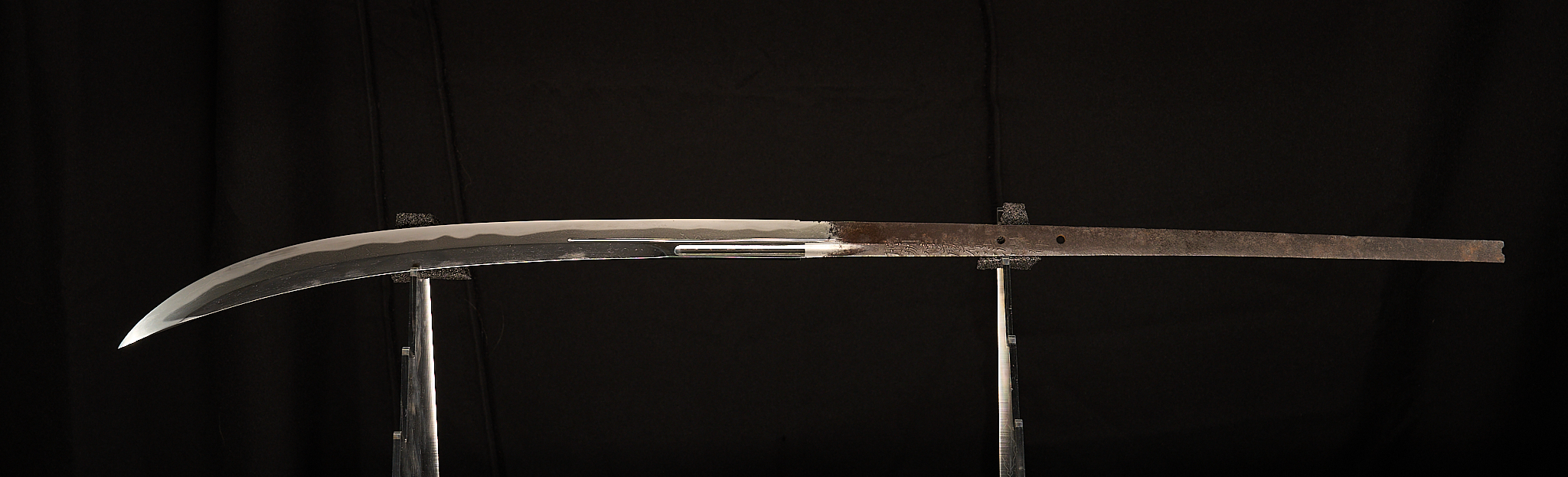 KIYOKUNI (清国), Bunroku (文禄, 1592-1596), Higo – “Higo no Kuni Dōtanuki Kiyokuni” (肥後国同田貫清国), “Hishū-jū Fujiwara Kiyokuni saku” (肥州住藤原清国作), Dōtanuki school, he worked during the Tenshō era (天正, 1573-1592) for Katō Kiyomasa (加藤清正, 1562-1611) and legend says that he received the character for “Kiyo” from him whereupon he took the smith name Kiyokuni, he lived first in Kikuchi (菊池) but moved later to Kumamoto (熊本), it is said that he was the same Kiyokuni who worked around Keichō (慶長, 1596-1615) in Satsuma and signed with “Sasshū Isa-jū Kiyokuni” (薩州伊佐住清国), he made mostly blades with a stout sugata which renowned for their supreme sharpness, the jigane is an itame-nagare mixed with masame, the hamon is a chū-suguha mixed with notare in ko-nie-deki or also a gunome-midare, along the habuchi often mura-nie and yaki-kuzure are seen, ryō-wazamono
