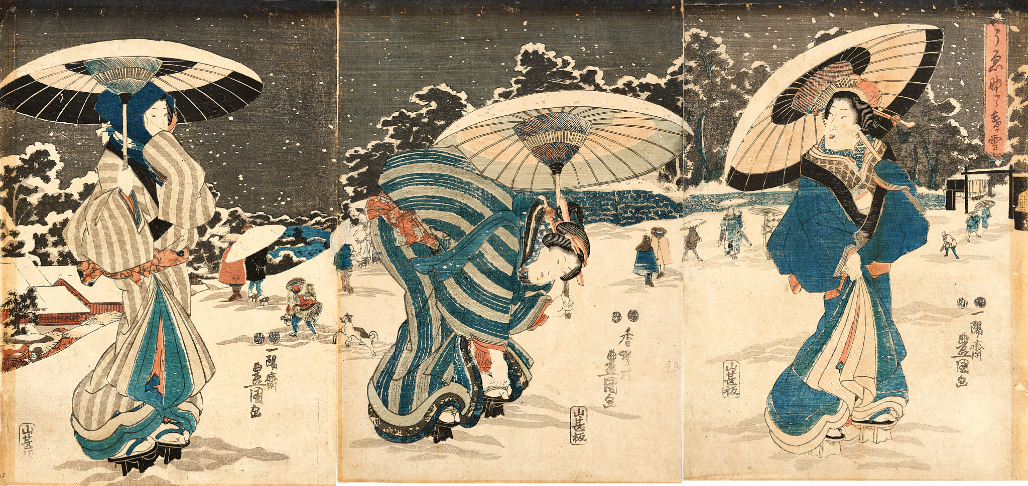 Tryptych by Toyokuni motif of Beautiful Women 1847 – 1852